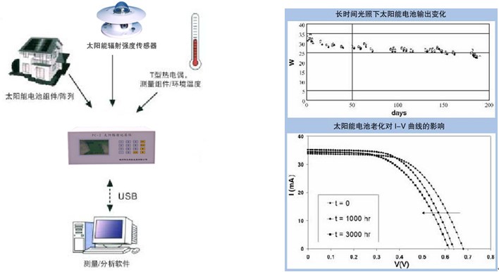 準(zhǔn)確測(cè)試光伏方陣和組件在野外條件下的太陽輻射強(qiáng)度,環(huán)境溫度,風(fēng)速,電池組件的溫度,開路電壓、短路電流、最大功率、最大功率點(diǎn)電壓、最大功率點(diǎn)電流和填充因子測(cè)算光伏方陣和組件在標(biāo)準(zhǔn)測(cè)試條件下(STC)下的開路電壓、短路電流、最大功率、最大功率點(diǎn)電壓、最大功率點(diǎn)電流、填充因子和轉(zhuǎn)換效率