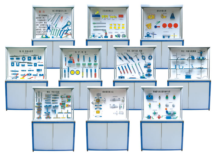 陳列柜、機械陳列柜、電機與變壓器陳列柜、機械基礎陳列柜、機械零件陳列柜、減速器陳列柜、機械原理陳列柜、機械制圖陳列柜、模具示教陳列柜、金屬切削陳列柜、金屬工藝學陳列柜、公差配合陳列柜、鉗工工藝學陳列柜、金屬刀具陳列柜、機床夾具陳列柜、車工工藝學陳列柜、機械設計基礎陳列柜、機械綜合陳列柜、機械制圖模型、立體示教模型、電機模型、變壓器模型、透明塑膠模具、五金教學模具、機械教學掛圖、機床電氣實訓設備、機床維修考核設備、數(shù)控車床綜合實訓考核實驗臺、機電一體化實驗臺、光機電一體化實訓設備、工程制圖實驗室設備,液壓氣動PLC控制實驗臺、透明液壓注塑機模型、透明注塑機模模型、冷沖圧機模型、多功能工程制圖桌、機械創(chuàng)新搭接實驗臺、教學生產(chǎn)型數(shù)控車床、數(shù)控銑床、機電一體化《數(shù)控編程實驗》、可編程控制實驗臺、客貨兩用教學仿真電梯實訓設備、鉗工實訓設備、機械原理、機械零件、金屬切削刀具、公差配合、車工工藝學、鉗工工藝學、等系列陳列柜以及液壓演示臺
