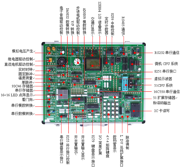 集成一體化單片機、微機接口綜合實驗箱綜合51單片機系統(tǒng)和8088微機原理接口系統(tǒng)為一體化設計的實驗平臺,根據單片機和微機接口實驗教學的特點出發(fā),全部系統(tǒng)和實驗模塊采用一體化設計方式,該實驗系統(tǒng)是目前最實用的一款單片機和微機接口綜合實驗教學平臺,適合各層次學生進行單片機原理和應用方面的實驗教學。主要元器件采用直插式焊接工藝,插線孔采用通孔,防止異物進入孔內后造成插孔堵塞后不易清理。