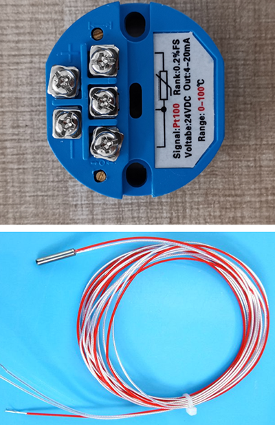 特點:Pt100傳感器精度高,熱補償性較好,用于做標(biāo)準(zhǔn)校驗用熱電阻。變送器部分供電DC24V,輸出4-20mA DC通信功能,用于測量加熱模塊內(nèi)部的溫度,是工業(yè)現(xiàn)場中常用的一溫度測量儀表。精度為0.5級