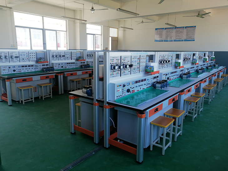 電工電子電拖PLC綜合實(shí)訓(xùn)考核裝置"教學(xué)做"電工一體化教室以電氣運(yùn)行與控制專業(yè)必備的電氣設(shè)備安裝、操作、維護(hù)與應(yīng)用崗位能力為重點(diǎn),以照明線路、電動(dòng)機(jī)繼電控制線路和常用機(jī)床電氣控制技能為目標(biāo),成為集教學(xué)、培訓(xùn)、服務(wù)和學(xué)生創(chuàng)新活動(dòng)于一體的高水平綜合性實(shí)踐教學(xué)基地。