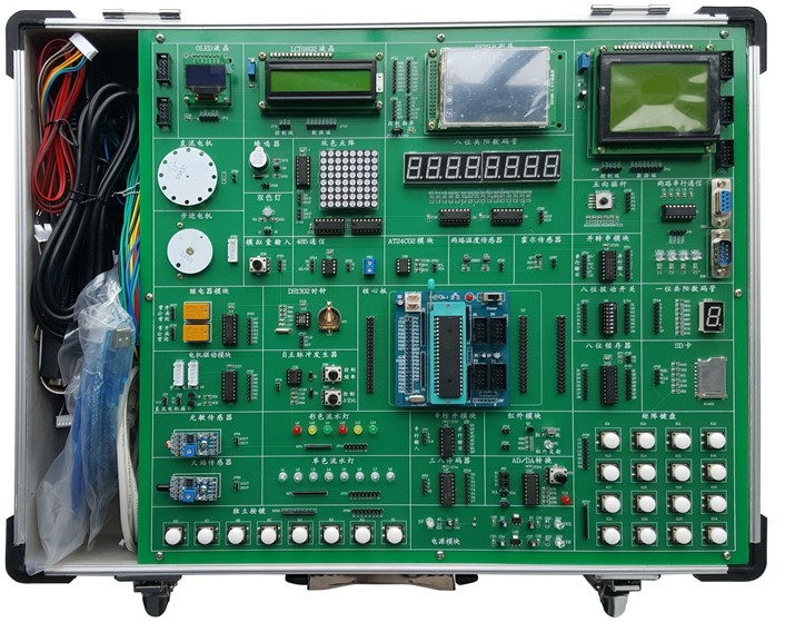 單片機(jī)實(shí)訓(xùn)實(shí)驗(yàn)臺(tái),單片機(jī)技術(shù)實(shí)驗(yàn)箱,單片機(jī)與嵌入式實(shí)驗(yàn)室,萬(wàn)能單片機(jī)實(shí)驗(yàn)開(kāi)發(fā)系統(tǒng)、單片機(jī)開(kāi)發(fā)應(yīng)用技術(shù)綜合實(shí)驗(yàn)裝置是電子與通信、自動(dòng)化信息工程技術(shù)、計(jì)算機(jī)基礎(chǔ)課實(shí)訓(xùn)室等課程實(shí)驗(yàn)實(shí)訓(xùn)。單片機(jī)實(shí)驗(yàn)室是專(zhuān)為電子、通信和自動(dòng)化等專(zhuān)業(yè)而設(shè)立,單片機(jī)實(shí)驗(yàn)室設(shè)備適應(yīng)《微機(jī)原理與接口技術(shù)》《單片機(jī)原理與應(yīng)用》課程的需要,滿足了正常實(shí)驗(yàn)教學(xué)的同時(shí),設(shè)立了開(kāi)放性實(shí)驗(yàn)室功能,充分調(diào)動(dòng)了學(xué)生學(xué)習(xí)的積極性,方便了學(xué)生和老師實(shí)驗(yàn)程序的編制和調(diào)試。單片機(jī)實(shí)訓(xùn)設(shè)備主要承擔(dān)《單片機(jī)原理》、《微機(jī)接口與技術(shù)》等相關(guān)課程的實(shí)驗(yàn)、課程設(shè)計(jì)及畢業(yè)設(shè)計(jì)。