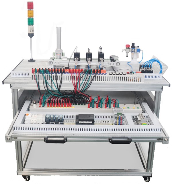 電子電工及PLC實(shí)訓(xùn)室設(shè)備是機(jī)電相關(guān)專業(yè)學(xué)生在電子及工業(yè)控制領(lǐng)域的重要實(shí)訓(xùn)實(shí)踐教學(xué)場(chǎng)所,同時(shí)也可以為其他城軌機(jī)電設(shè)備相關(guān)課程實(shí)踐提供控制平臺(tái)。電子電工與PLC實(shí)訓(xùn)室配置有西門子公司S7-1200系列PLC作為控制核心,同時(shí)配套有流水燈、港口起重機(jī)、十字路交通燈、三層電梯、天塔之光等預(yù)設(shè)實(shí)訓(xùn)模塊。其附帶有7英寸彩色觸摸屏,通信下載編程電纜,觸摸屏與PLC通信電纜,開發(fā)組態(tài)軟件等配套設(shè)備,構(gòu)建了完全真實(shí)的PLC項(xiàng)目開發(fā)環(huán)境,便于學(xué)生演練PLC項(xiàng)目開發(fā)的全套流程。同時(shí),實(shí)訓(xùn)設(shè)備外掛了電子實(shí)訓(xùn)模塊,可供學(xué)生進(jìn)行電子相關(guān)實(shí)訓(xùn)。該實(shí)訓(xùn)室利用多媒體教學(xué)、網(wǎng)絡(luò)教學(xué)等先進(jìn)手段,將復(fù)雜知識(shí)點(diǎn)簡(jiǎn)單化,將實(shí)訓(xùn)內(nèi)容與工作任務(wù)融合為一,實(shí)現(xiàn)了一體化教學(xué)的目的。