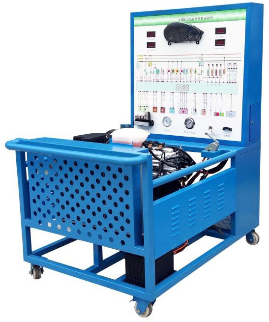 設(shè)備采用翻新新款五菱B15 電控汽油發(fā)動(dòng)機(jī)總成及運(yùn)行附件的固定臺(tái)架和運(yùn)行檢測(cè)控制面板臺(tái)架兩部分組成;