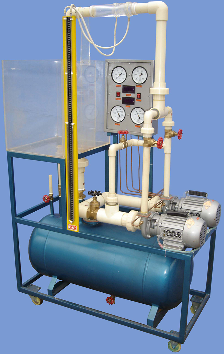離心泵、蓄水箱、文丘里流量計(jì)、壓力表、壓差計(jì)、功率表、實(shí)驗(yàn)管道、閥門(mén)、自循環(huán)裝置、不銹鋼框架。