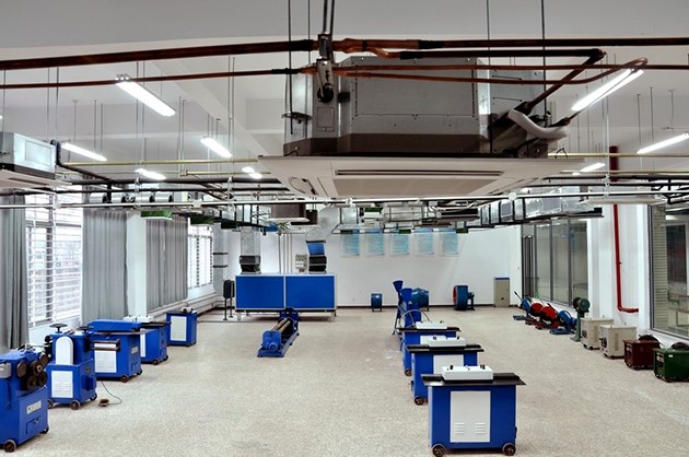 3.組合式空調(diào)機組、新風機組、風機盤管、冷卻塔、風機、消聲器、多聯(lián)機、滾剪機、咬口機、卷圓機、合縫機等主要設備,組成一次回風式空調(diào)系統(tǒng)、新風加風機盤管空調(diào)系統(tǒng)、排風系統(tǒng)、多聯(lián)機空調(diào)系統(tǒng)等四個系統(tǒng),可以承擔組合式空調(diào)機組安裝、冷卻塔安裝、新風機組安裝、風機盤管安裝、風機安裝、多聯(lián)機安裝、風口安裝、風管制作等8個實訓項目。