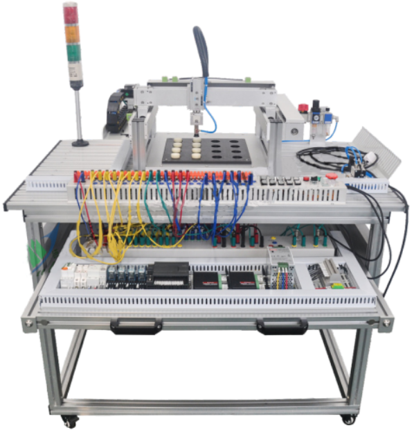 電工電子與PLC實(shí)訓(xùn)臺(tái)通過(guò)上述實(shí)訓(xùn)設(shè)備,學(xué)生可在實(shí)訓(xùn)室中完成PLC的基本指令編程練習(xí)、三相異步電動(dòng)機(jī)控制練習(xí)、PLC觸摸屏控制設(shè)計(jì)練習(xí)以及如流水燈控制、起重機(jī)控制、十字路交通燈控制、三層電梯控制等實(shí)際設(shè)計(jì)項(xiàng)目的練習(xí)。同時(shí),通過(guò)外掛電子實(shí)訓(xùn)設(shè)備,學(xué)生可以通過(guò)實(shí)訓(xùn)驗(yàn)證基爾霍夫定律、疊加原理、戴維南諾頓定理、雙口網(wǎng)絡(luò)、互易定理等電子相關(guān)定理。電工電子電拖PLC綜合實(shí)訓(xùn)考核裝置主要承擔(dān)《電工技術(shù)實(shí)訓(xùn)》、《PLC及其應(yīng)用》、《模擬電子技術(shù)實(shí)訓(xùn)》、《數(shù)字電路實(shí)訓(xùn)》、《電力拖動(dòng)實(shí)驗(yàn)實(shí)訓(xùn)》、《電力拖動(dòng)實(shí)驗(yàn)實(shí)訓(xùn)》、《PLC可編程控制器基礎(chǔ)電路實(shí)訓(xùn)